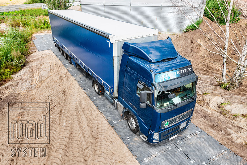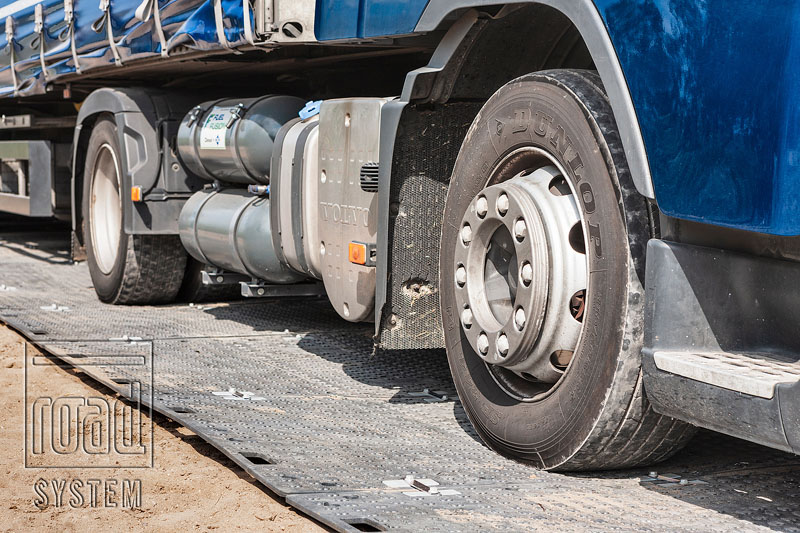 Ułożenie płyt drogowych ROAD SYSTEM bezpośrednio na gruncie okazało się możliwe, gdyż grunt był twardy i przepuszczalny. Po wyrównaniu nawierzchni, płyty zostały błyskawicznie zamontowane dzięki specjalnej konstrukcji łączników ROAD SYSTEM LINK.
