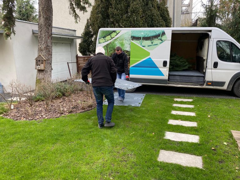 Trawnik nie ucierpiał, sosna została bezpiecznie przetransportowana. Właściciele byli zadowoleni z przeprowadzonej „operacji”, w przyszłości zamierzają korzystać z tymczasowego umacniania trawnika podczas imprez w ogrodzie.