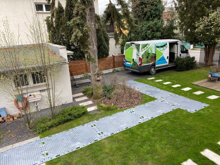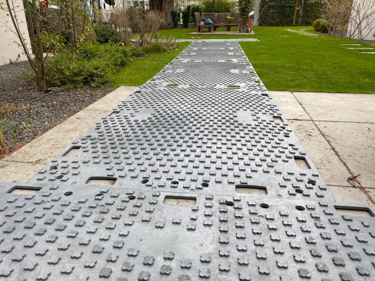 Za pomocą płyt ROAD SYSTEM można błyskawicznie ochronić wrażliwe nawierzchnie. Ścieżka transportowa została ułożona przez dwuosobowy zespół w ciągu kilkunastu minut. Dzięki konstrukcji płyty, a dokładniej wypustkom na jej powierzchni, transport odbył się bezproblemowo.