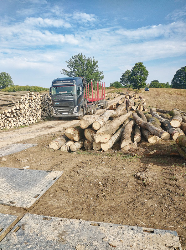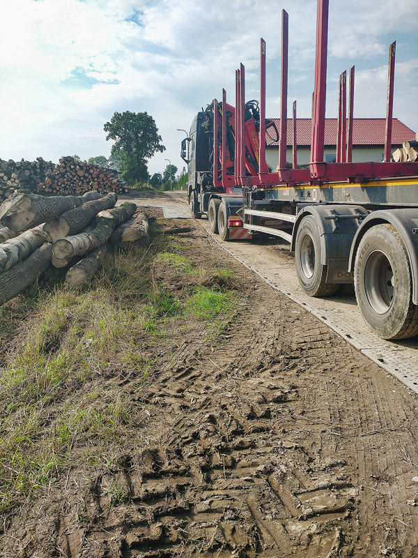 Spore wyzwanie logistyczne podczas wycinki drzew stanowią nierówne, piaszczyste i nieutwardzone leśne drogi. Samochody ciężarowe nierzadko mają problemy z grzęznącymi w piasku i błocie kołami, co znacznie spowalnia i utrudnia wywóz drewna.